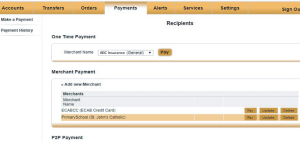 In order to make a payment you must first set the payee as a merchant. The following are the steps.
